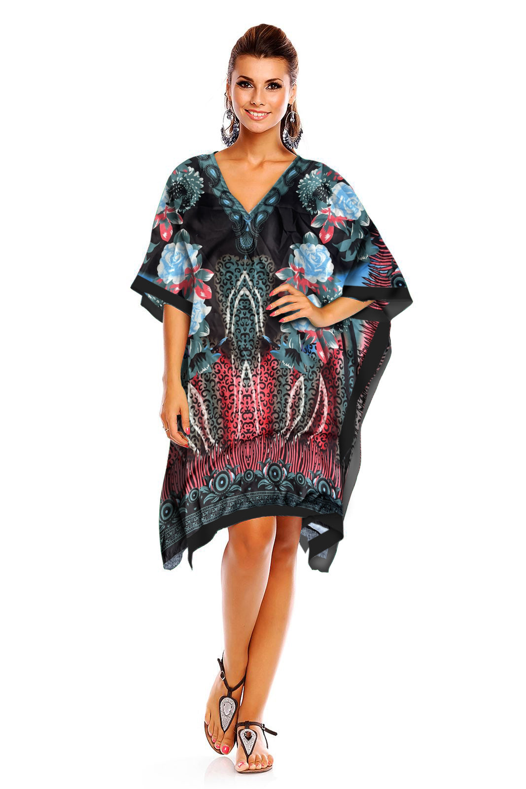 A summer must have! This stylish beach cover up short kaftan comes in a tribal print with a mid length. Crease free easy to stick in your case or beach bag for that well deserved holiday.